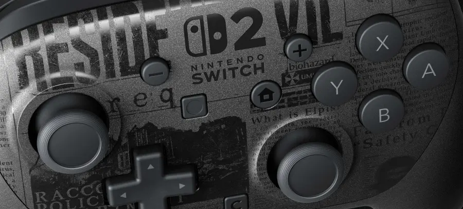 Emeld új szintre a játékélményt a Nintendo Switch 2 Pro Controller Resident Evil Requiem Edition vezérlővel, amelynek fegyverszürke-fekete anyagát a Resident Evil Requiem sötét és magával ragadó hangulatát tükröző, a játék világából származó újságcikkek díszítik.